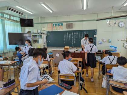 提出物の確認をていねいにおこなっていました。校長先生の凡事徹底の話を理解し、2学期も引き続き一人ひとりが学校のリーダーとして頑張ってほしいです。