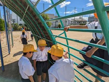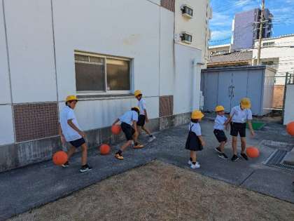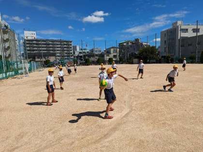 バスケットゴールが修復中のため、ドリブル個人練習に切り替えて休み時間を楽しんでいます。