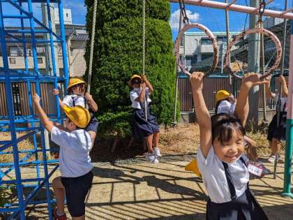 コンビネーション遊具がいつもの賑わいを取り戻しています。