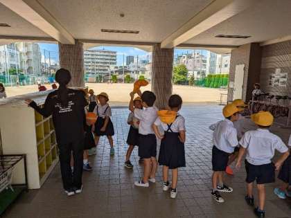 パワー全開で昼からも広い運動場で元気よく遊びます!先生も一緒です!