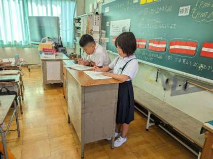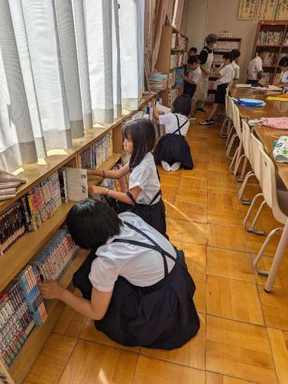 図書室では、ルールを守って読書していました。他の人が読みやすいように本棚の整理も自分たちでします。とてもよい心がけです。