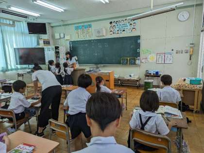 先生に学習を教えてもらったり、次の教室移動の準備をしたり、学校の生活リズムに慣れてきています。