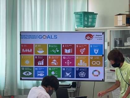 最近、町中でもよく目にするSDGsの学習をしました。中でも、2.飢餓をゼロにの項目で食品ロスについて考えました。食品ロスを自分事として考え、一人ひとりが行動していく大切さを学習していました。