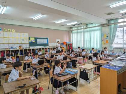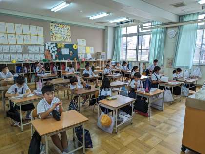 月曜日は児童朝会がオンラインで行われます。校長先生の話をしっかり聞くことができています。