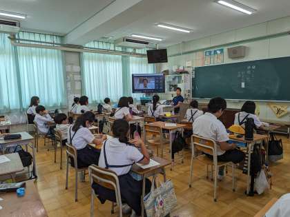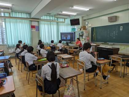 リモート朝会で校長先生の話を真剣に聞いていました。いじめについて考える柏里のリーダーとしての姿を頼もしく感じます。
