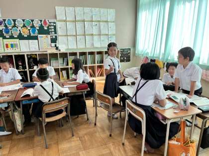 来年学校に入学する子供達にどんなことを伝えたいかをみんなで話し合っています。