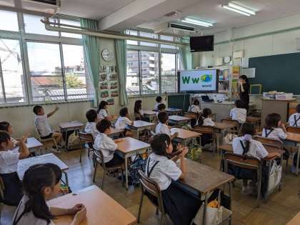 AからZまでの発音練習をしています。英語に慣れ親しみ、発音も意識して取り組むことができています。