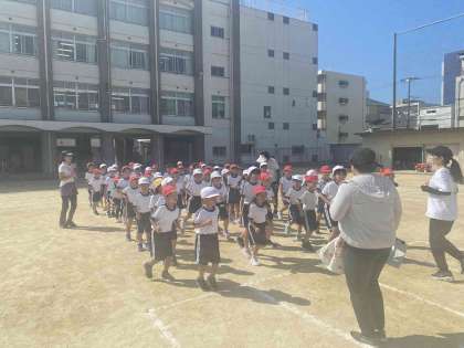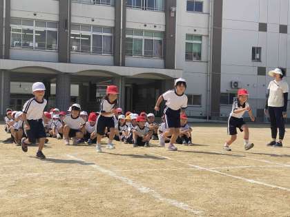 徒競走の練習です。30m先のゴールをめざして一生懸命です。