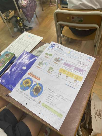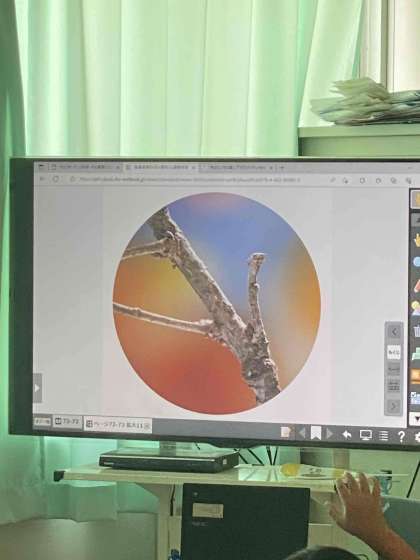 植物の学習から昆虫の学習へうつりました。3枚目の画面の中に虫が隠れています。どこでしょうか。