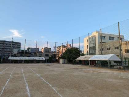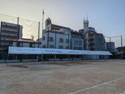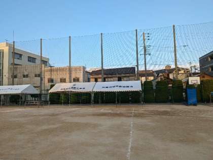 運動会の準備として放課後にテントを立てました。野里小学校の職員の方々にも手伝っていただきました。