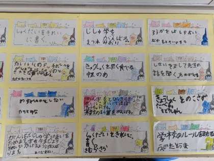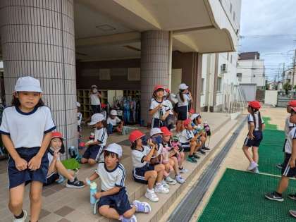2学期に頑張りたいことを書きました。一人ひとり課題に向かって頑張って欲しいです。綱引きの練習の合間の休憩です。水分補給をしっかりとしています。