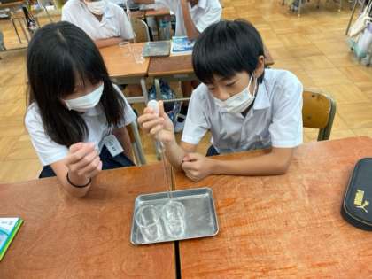 【いろいろな水よう液】の単元では、最初にピペットを使う練習をしました。子どもたちは、「意外と難しい」と苦戦しながら取り組んでいました。