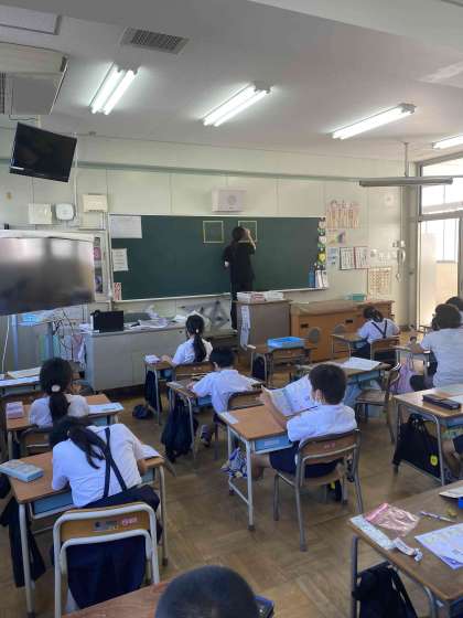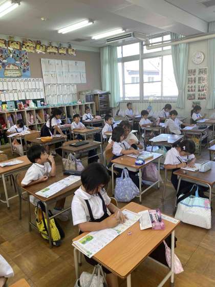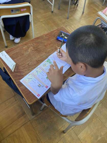 担任の先生が来てくれて朝からにっこにこの1年生!張り切って漢字の学習も行いました。