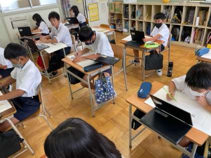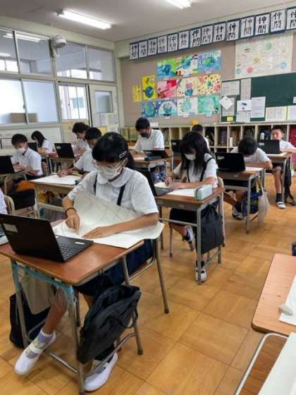 学校内でのお気に入りの景色を写真にとり、集中してかいています。