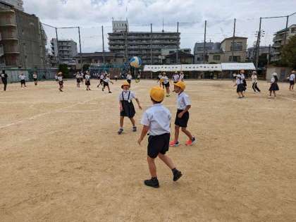 運動場で元気よく遊んでいます。野里小学校の運動会の練習もあり、運動場の使用も時間を決めて活動しています。チャイムの合図を守るという10月の生活目標を意識して、運動場を野里小学校のみなさんも気持ちよく使用できるように考えて行動しましょう。