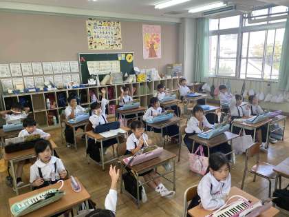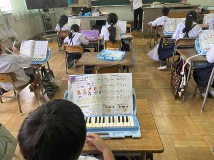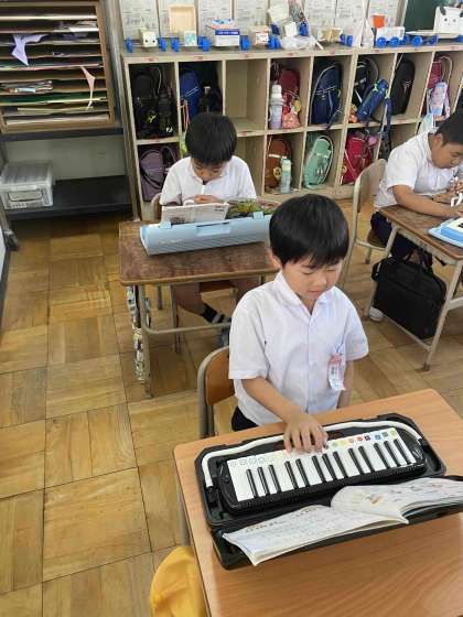 鍵盤ハーモニカで山のポルカを練習中です。中には目を閉じてもできる〜と言って演奏している子もいました。相当練習しているようです。
