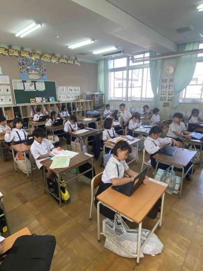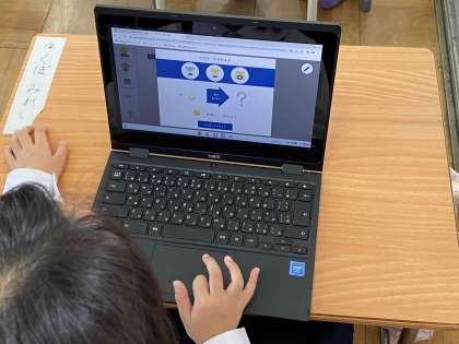 清掃後の学習時間はパソコンを使ってデジタルドリルに取り組んでいます。達成すると冠やトロフィーが貰えるので励みになっています。