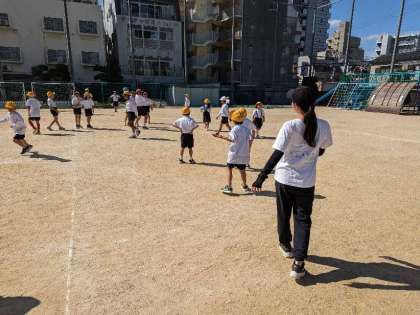 けいどろ遊び(けいさつとどろぼうのおに遊び)がみんな遊び1番人気のようです。3クラスがけいどろをしていました。