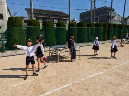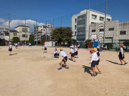 学級遊びに取り組む学級が多く、ドッジボールやけいどろで楽しく過ごしています。