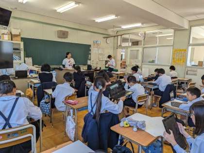 金属と薬品を使った実験を理科室で行います。ルールを守って学習を進めていきます。