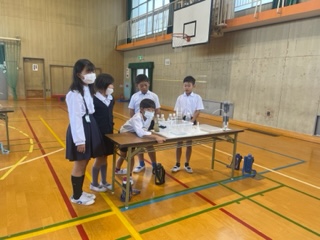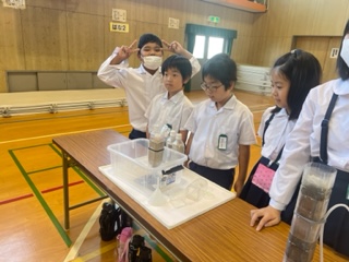 柴島浄水場から出前授業に来ていただきました。水の浄水の仕方をペットボトルを使って、分かりやすく教えてもらいました。飲み水になるまでの大変さが分かりました。