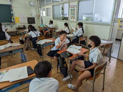 できること、できないことについて英語でコミュニケーションをとっています!笑顔がたくさん見られました。I can〜. I