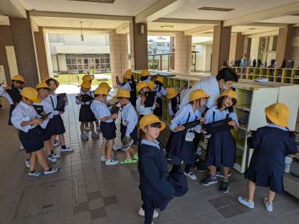 秋の自然をパソコンのカメラで撮影します。天気もよく、自然をたくさん写真に残せそうです。パソコンの扱いも、上手になってきました。持ち運びにはくれぐれも気をつけましょう!