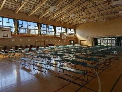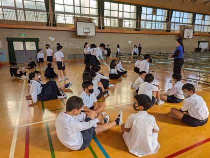 明日の音楽鑑賞会のために6年生が講堂に観客用の椅子を並べをしました。全員で協力して10分足らずで全児童分の椅子を並べることができました。しっかり働いて少し疲れたと思います。明日の音楽鑑賞会も楽しみです。
