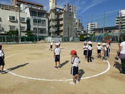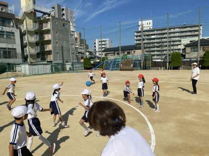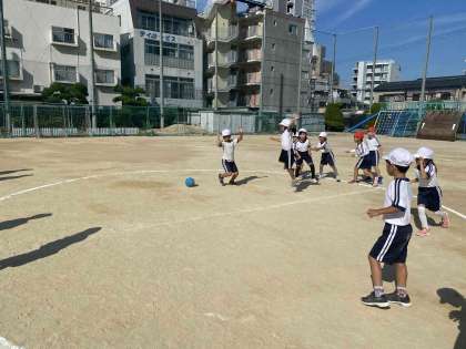 ボール運動を行っていますが、投げるのが上手になってきました。またうまく避けるゲームでもありますが、ボールの方向を予想して上手に避けています。