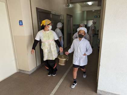 いつも美味しい給食をありがとうございます。給食調理員さんに感謝の気持ちを伝えられるようにいただきますをしましょう。