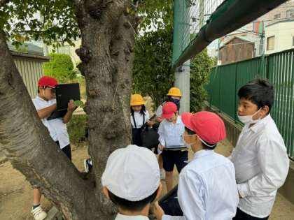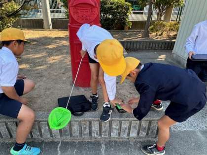 中庭、学習園、運動場へ行き、秋の生き物を観察しました。それぞれがパソコンで写真をとり、春・夏との様子の違いを見つけることができました。