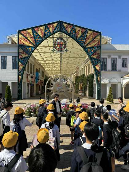 入園しました。レストランが空いているので、先に昼食を食べる班が多いようです。