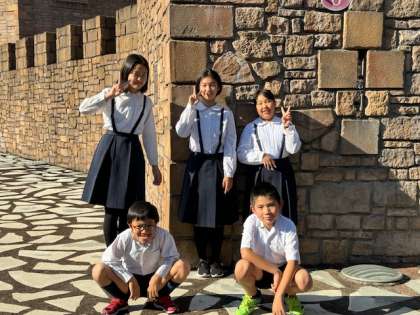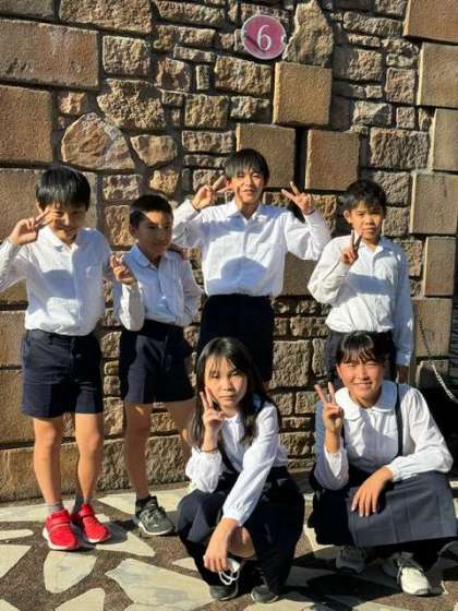 ?ハビエル城前にて班ごとに写真撮影です!全班時間内に来ました!みんな楽しそうです^_^