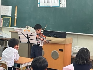 鍵盤ハーモニカを練習しています。ずいぶん上達してきました。クラスのお友達がバイオリンをひいてくれました。とてもきれいな音色にびっくりしました。