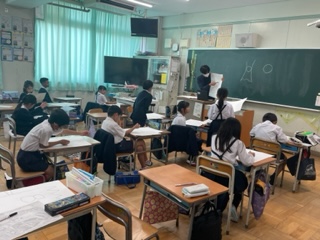 「こんな木がほしい」という作品を作っています。今日は木の色のつけ方を研究しました。