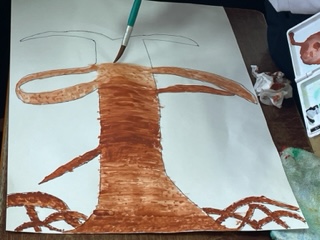 ?作品展に出す絵をかいています。先日学習した、ぬり方の技を使って丁寧に描いています。楽しみにしてください。