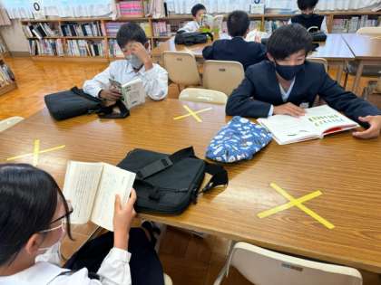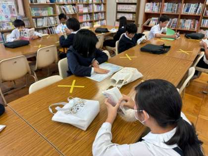 久しぶりの図書の時間に大喜びです。集中して読んでいます。