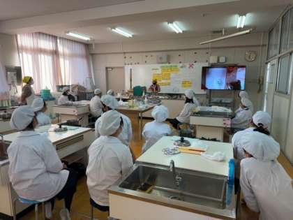 今日は和食の1つ、切り干し大根を作っていきます。手順をよく聞き、班で分担して行います。