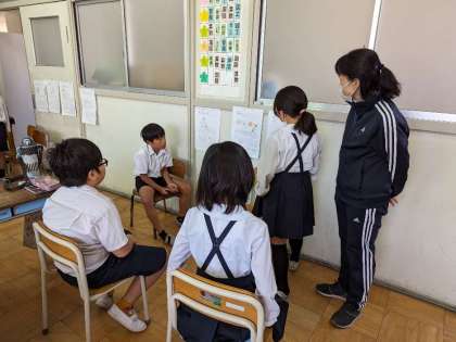 パラリンピックについて調べたことを発表しています。グループディスカッションのような形態で質問等も受け付けていました。しっかり調べているので、すぐに受け答えできています。すでにパラリンピックマスターです!