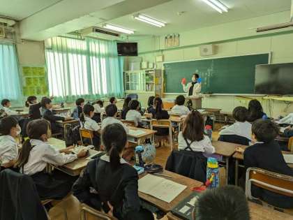 図書ボランティアの方の読み聞かせを真剣に聞いています。
