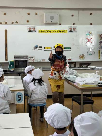 今日は森先生にピザ作りを教えてもらいました。餃子の皮でできる簡単ピザです。お家でもぜひ挑戦してほしいです。