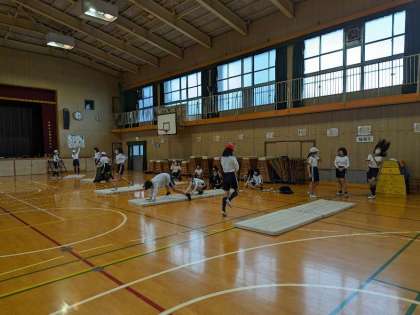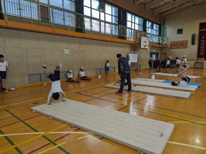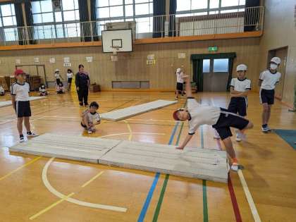 マット運動で自分の挑戦したい技にどんどんチャレンジしていました。