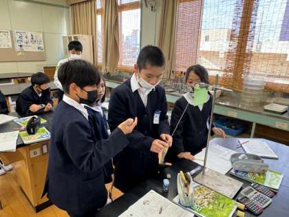 ふりこが1往復する時間が変わるのはどんなときかを考えました。予想を立て?ふれはば?おもりの重さ?ふりこの長さを1つずつ変えて実験していきました。ふれはば、おもりの重さを変えても1往復する時間には関係ないことがわかりました。最後のふりこの長さを変える実験ではどのようになるかが楽しみです。