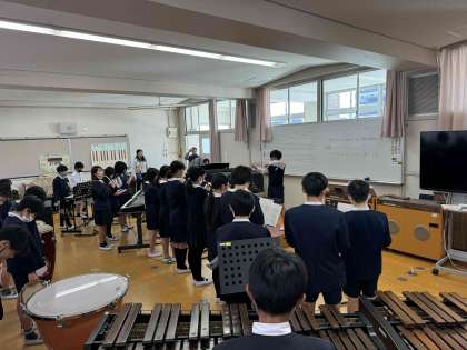 ルパン3世を合奏しました。印象的だったのは打楽器担当の児童がリズミカルにジャンプしたり体を揺らしたりしながらルパンの軽快さを演出していて楽しい合奏となりました。
