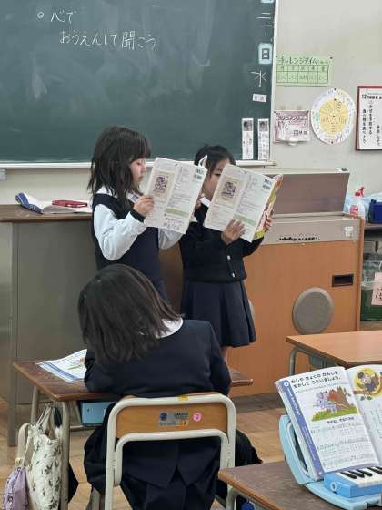 歌を歌ったり鍵盤ハーモニカで演奏したりみんなの前で発表しました。