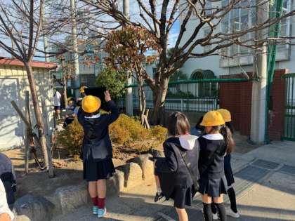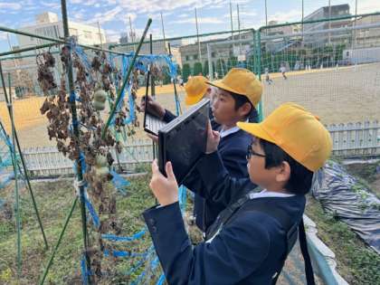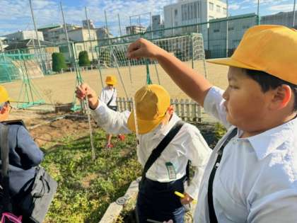 ?冬の生き物を観察するために運動場へ行きました。春に植えたひょうたんが枯れかけていたり、虫が減っていたりしたことに気がついていました。3学期にはどのようになっているのか楽しみです。
