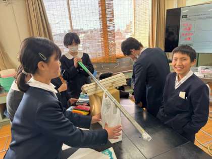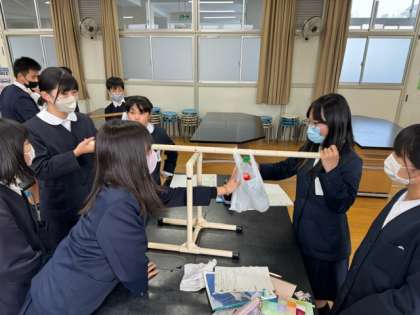 前回学習した、支点、力点、作用点の位置を変えると、重いものを小さな力で持ち上げることができるのかを調べる実験をしました。実験のルールを守りながら、重いものを軽く持ち上げることができる位置を見つけることができました。
