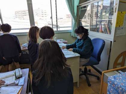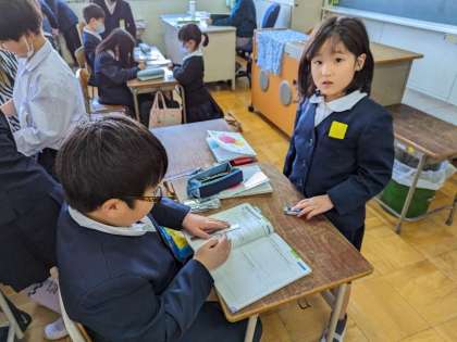 算数の学習で学び合い、教え合いをしています。わかりやすく説明することがとても大切です。