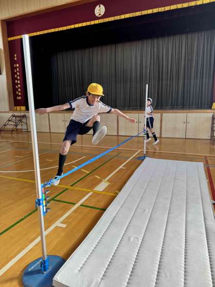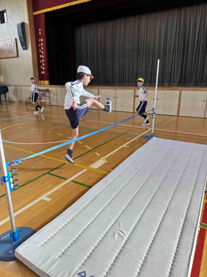 今日は講堂で体育を行いました。高跳びに挑戦し、助走や踏み切りなど基本の動作をしっかり守って学習できました。