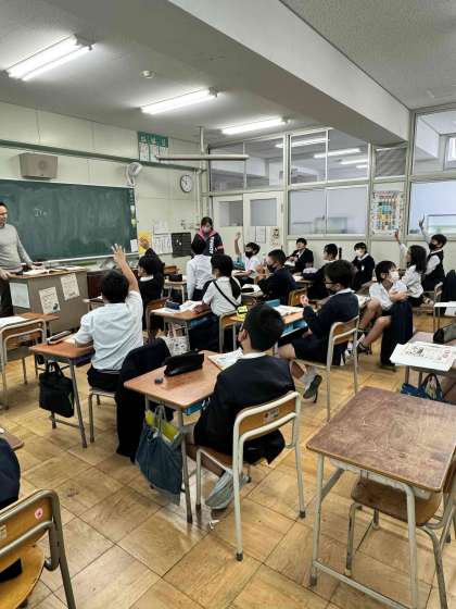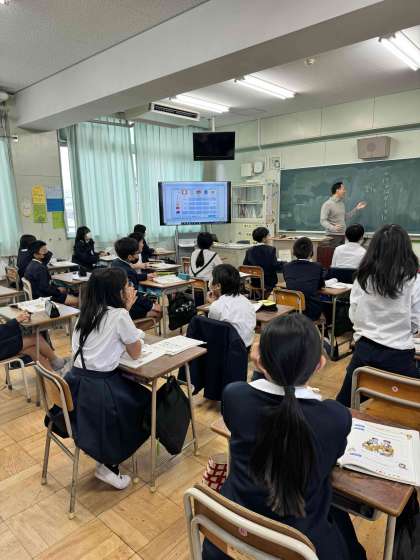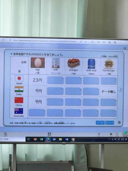 ラフィー先生と「各国の物の値段あてクイズ」を英語で行いました。卵やハンバーガーなど価格差にもびっくりしていましたが、楽しく学習を深めることができました。